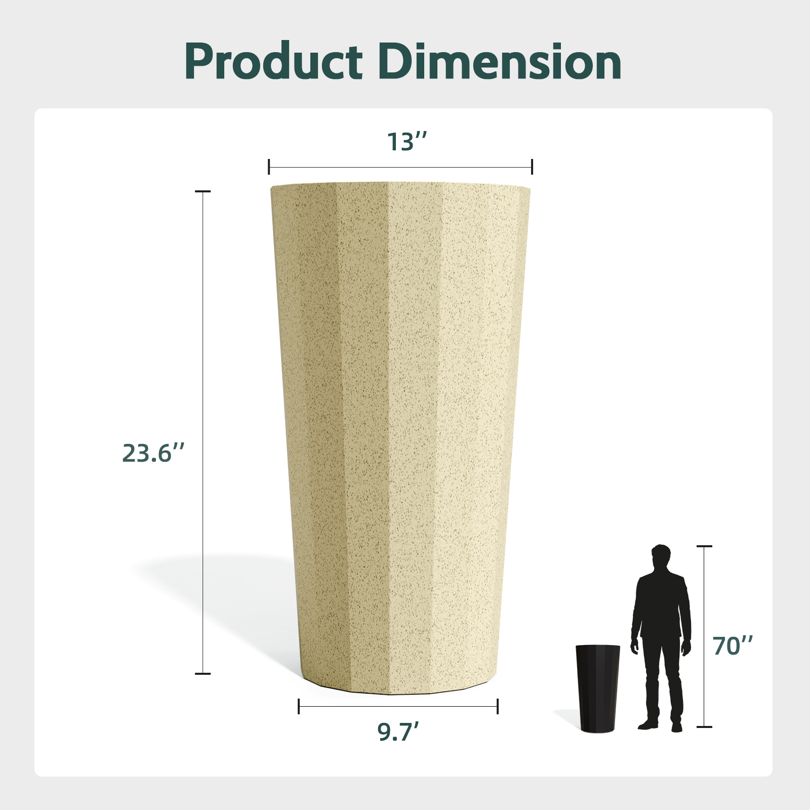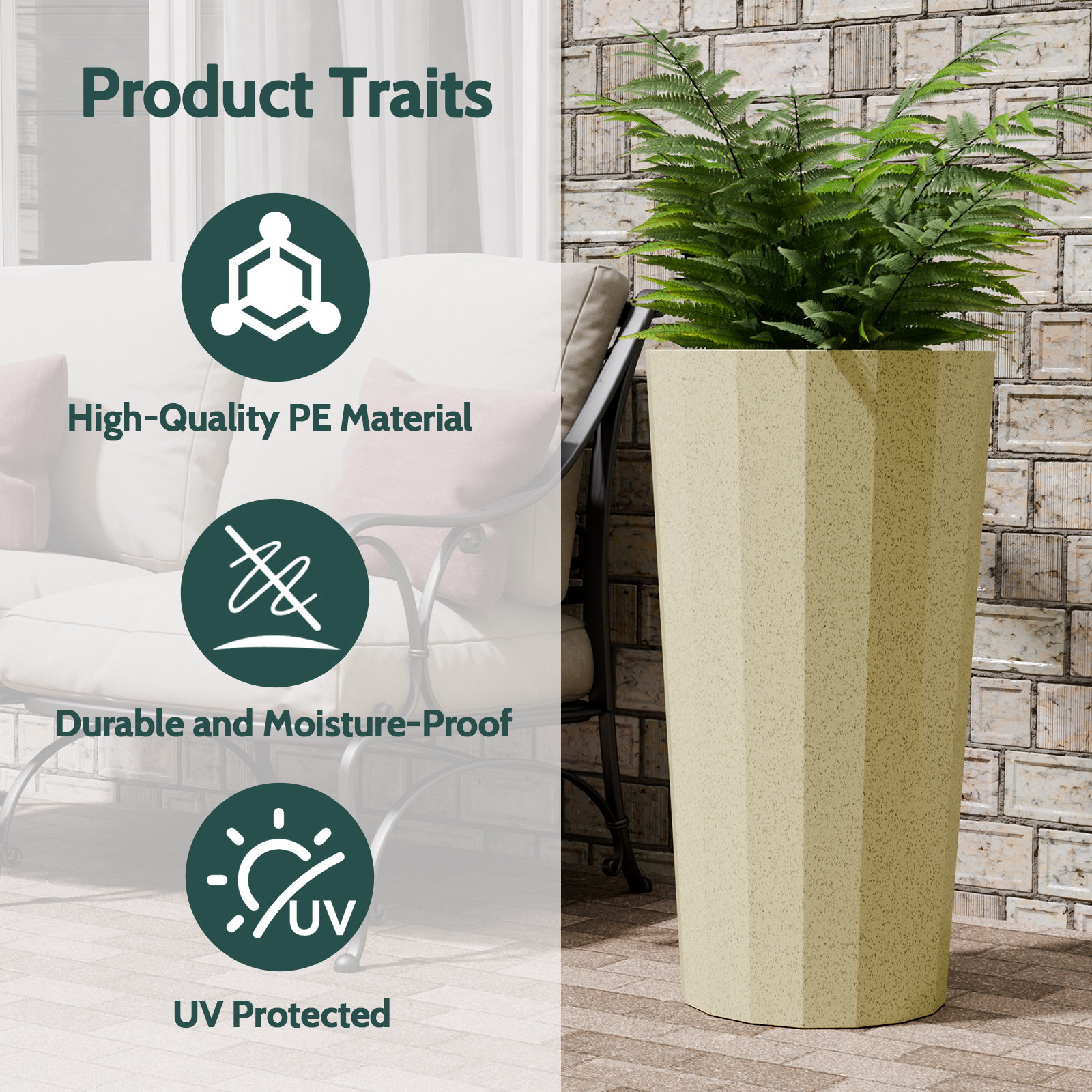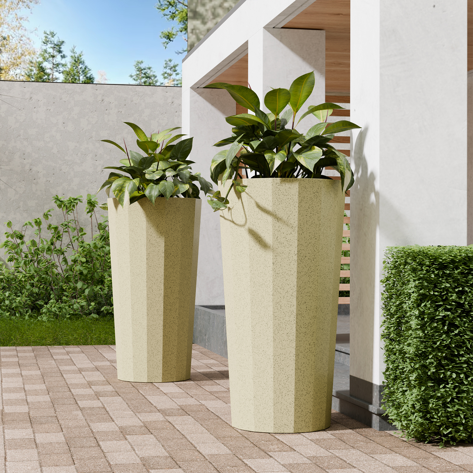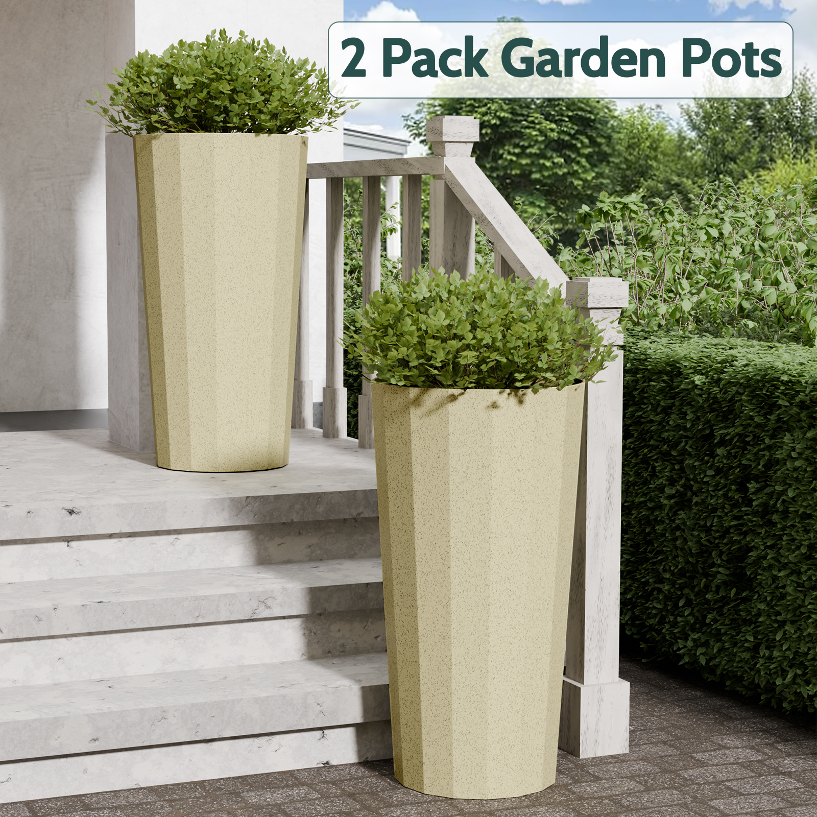 Chiccushion 23.6 inch Tall Planter Set of 2, Large Plastic Round Planter for Outdoor Indoor Garden Patio Front Door, Beige