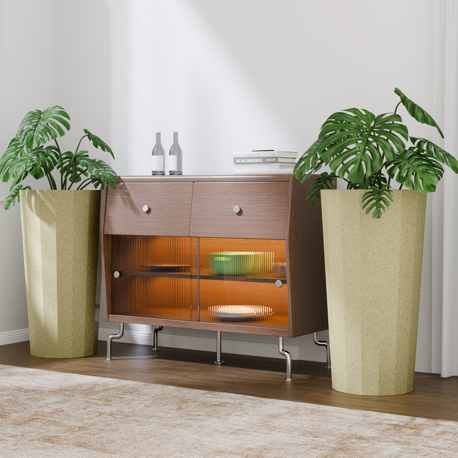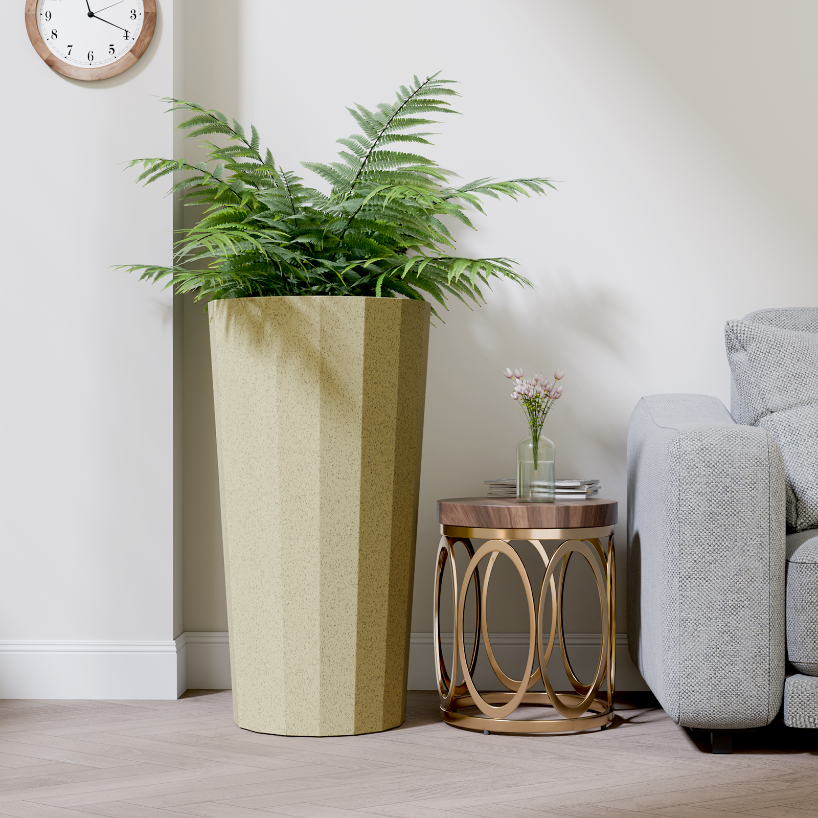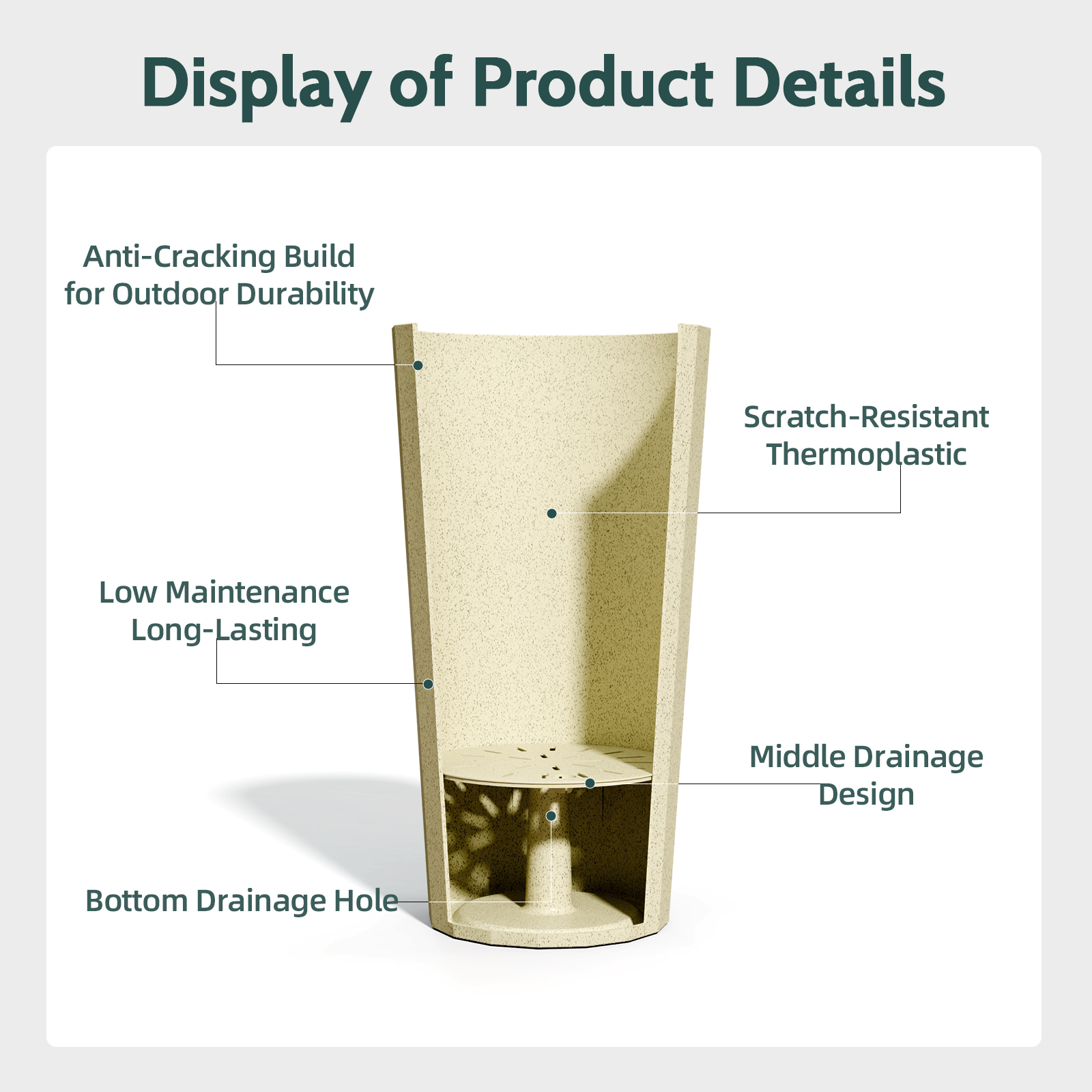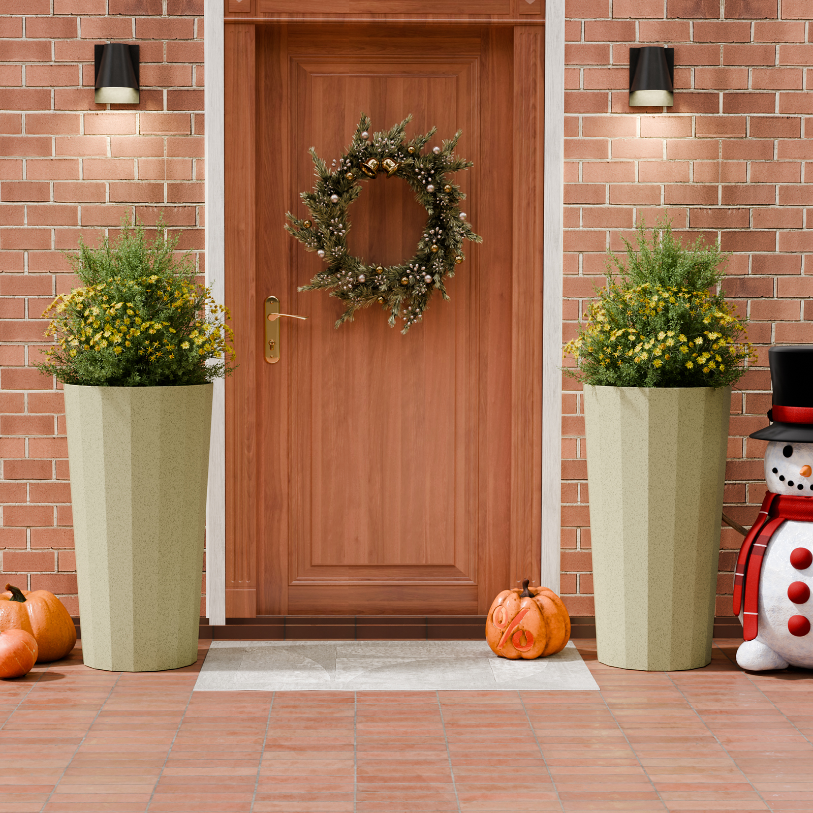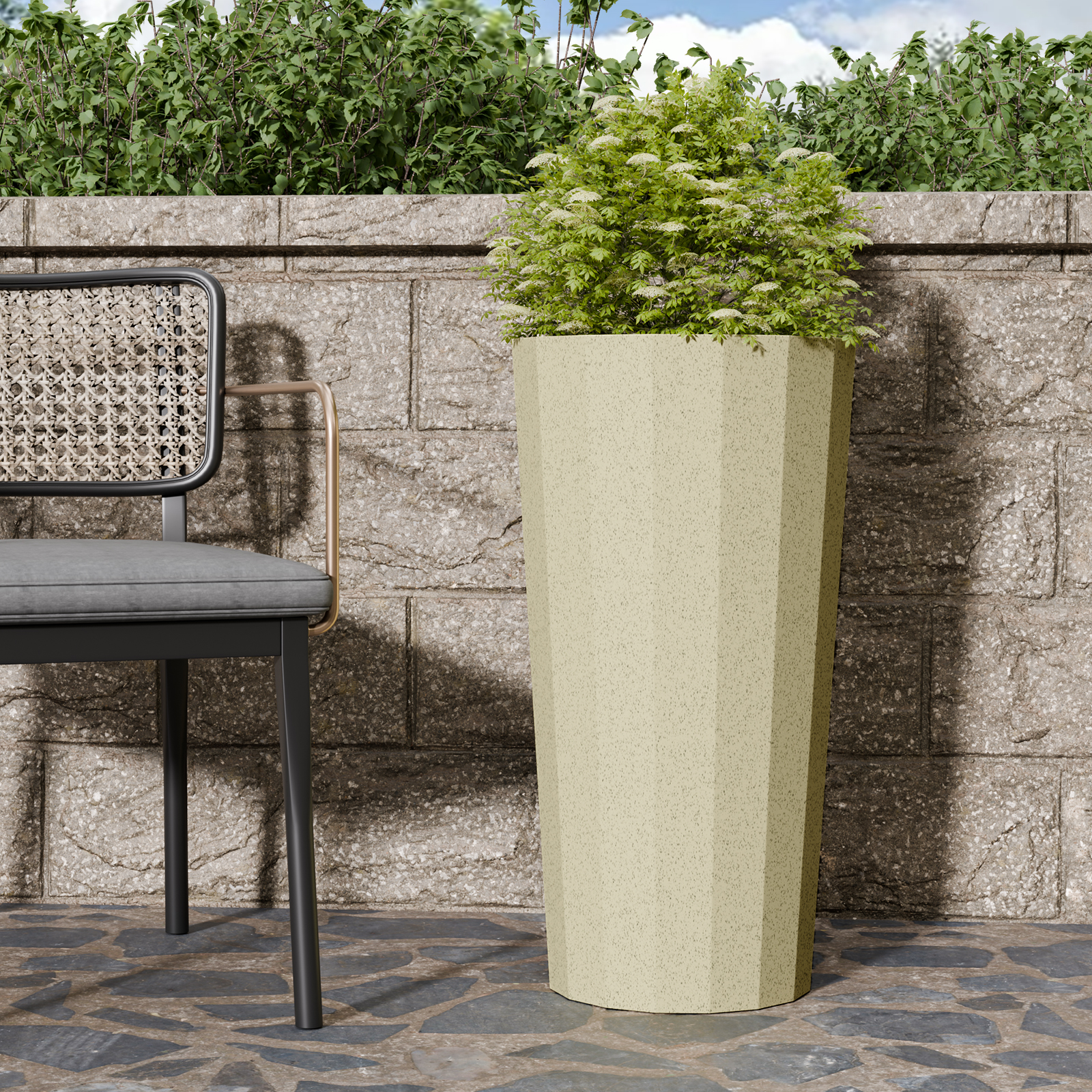 Chiccushion 23.6 inch Tall Planter Set of 2, Large Plastic Round Planter for Outdoor Indoor Garden Patio Front Door, Beige