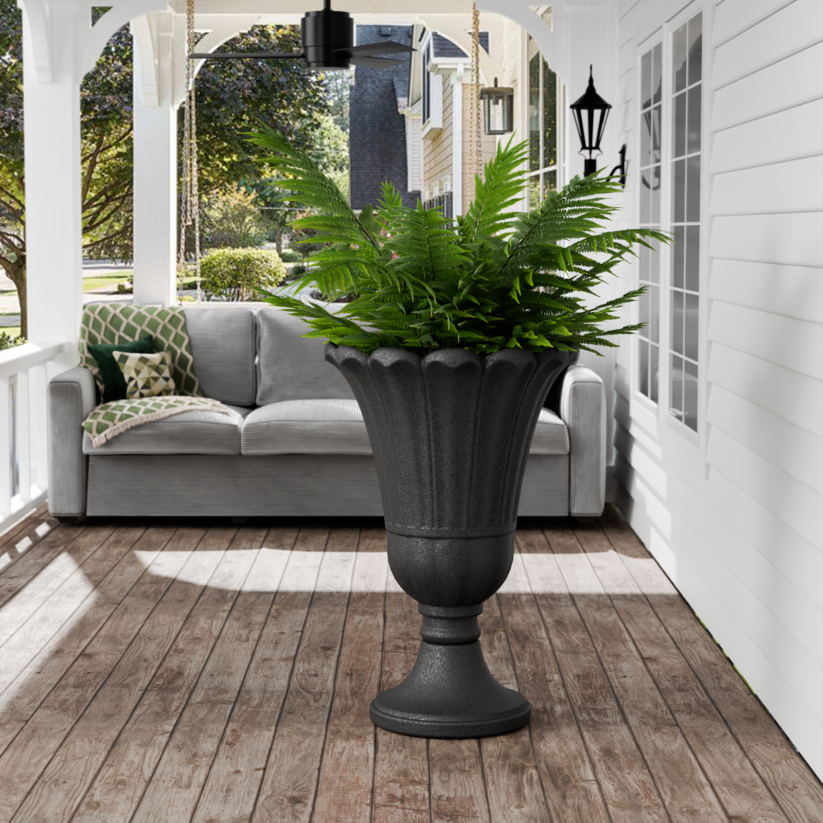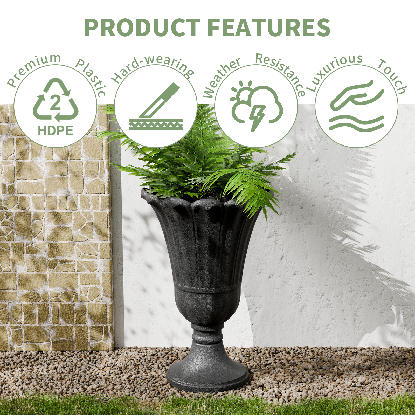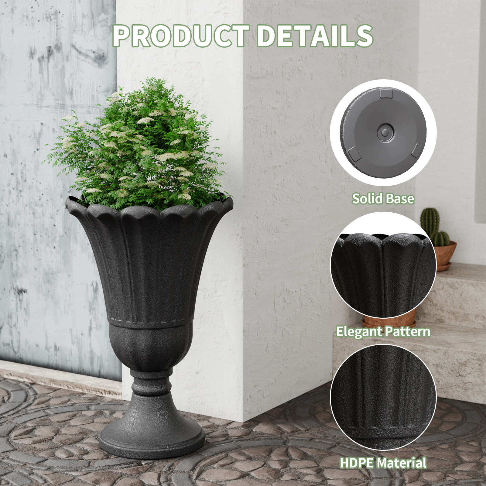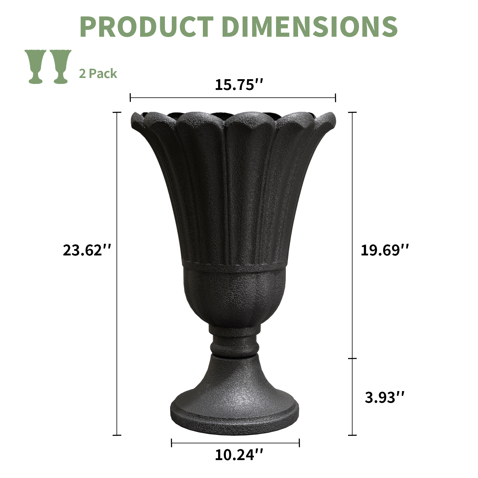 Chiccushion 23.6″ Large Urn Planters for Outdoor Plants, Set of 2 Plastic Flower Pot for Wedding Party Bridal Shower Garden Patio Home Decor, Black