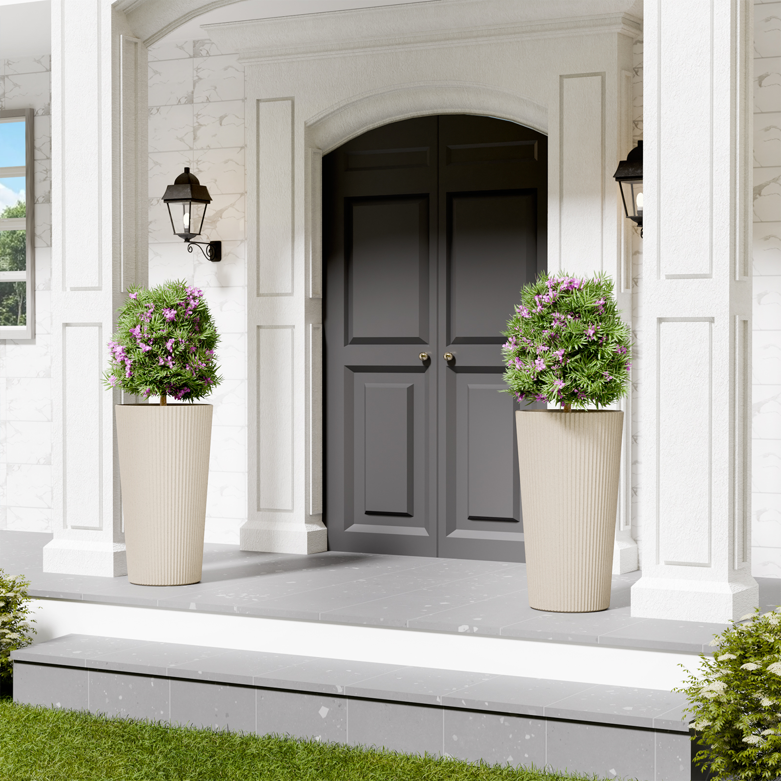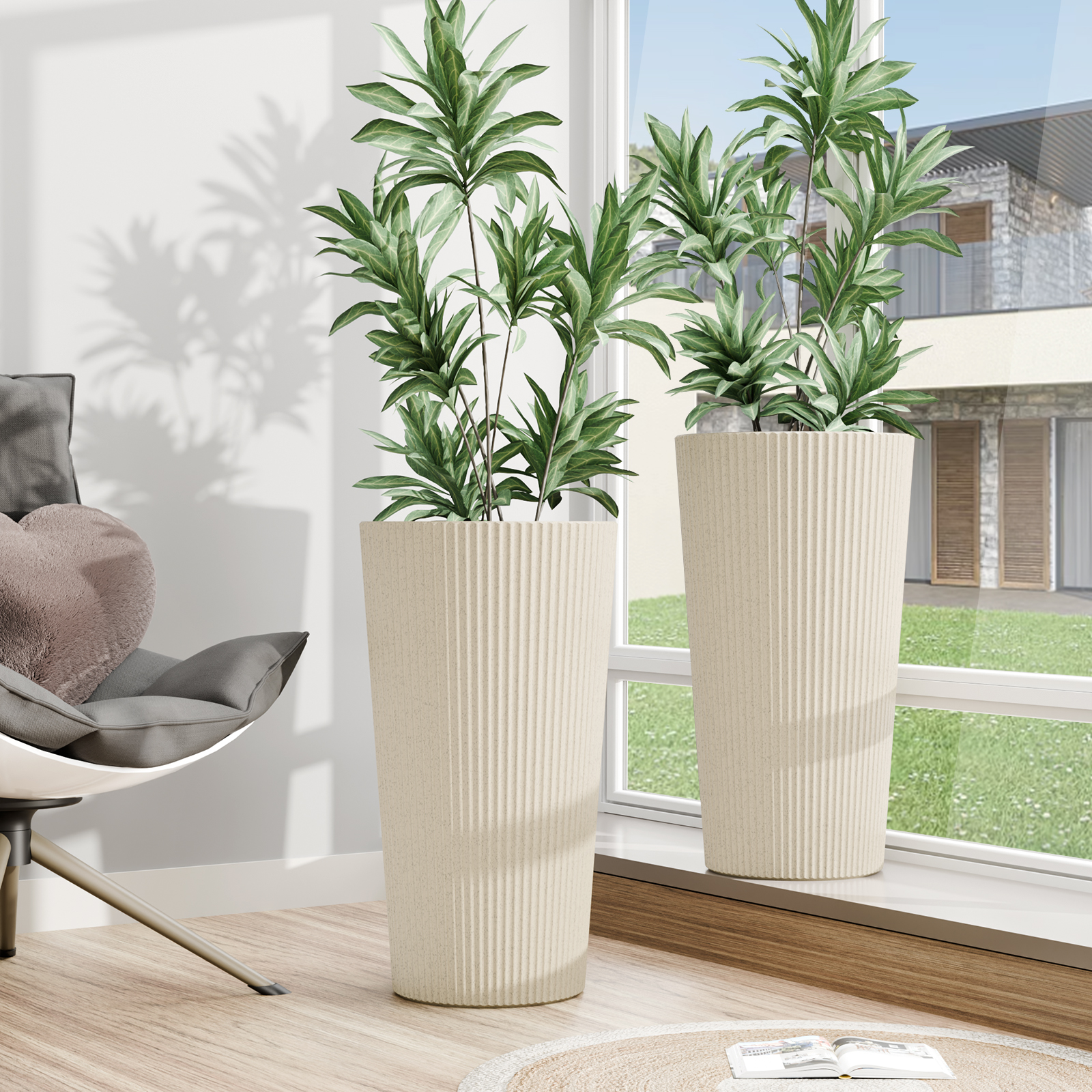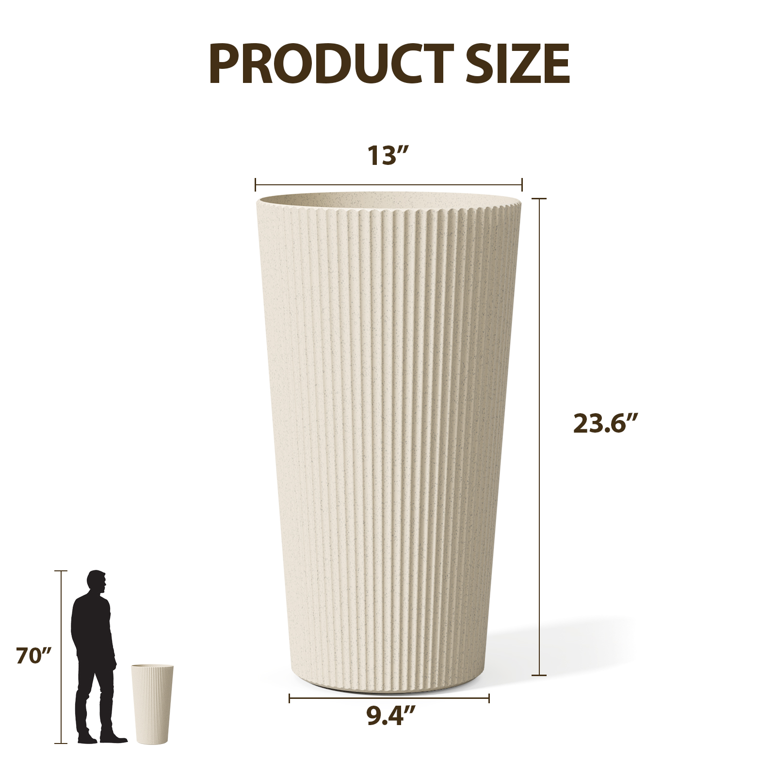 Chiccushion Tall Round Planter Set of 2, 23.6 Inch Tall Decorative Planter Pots for Outdoor Indoor Garden Patio Front Porch, Beige