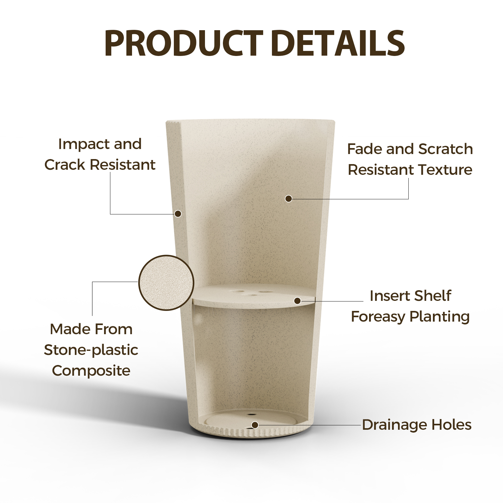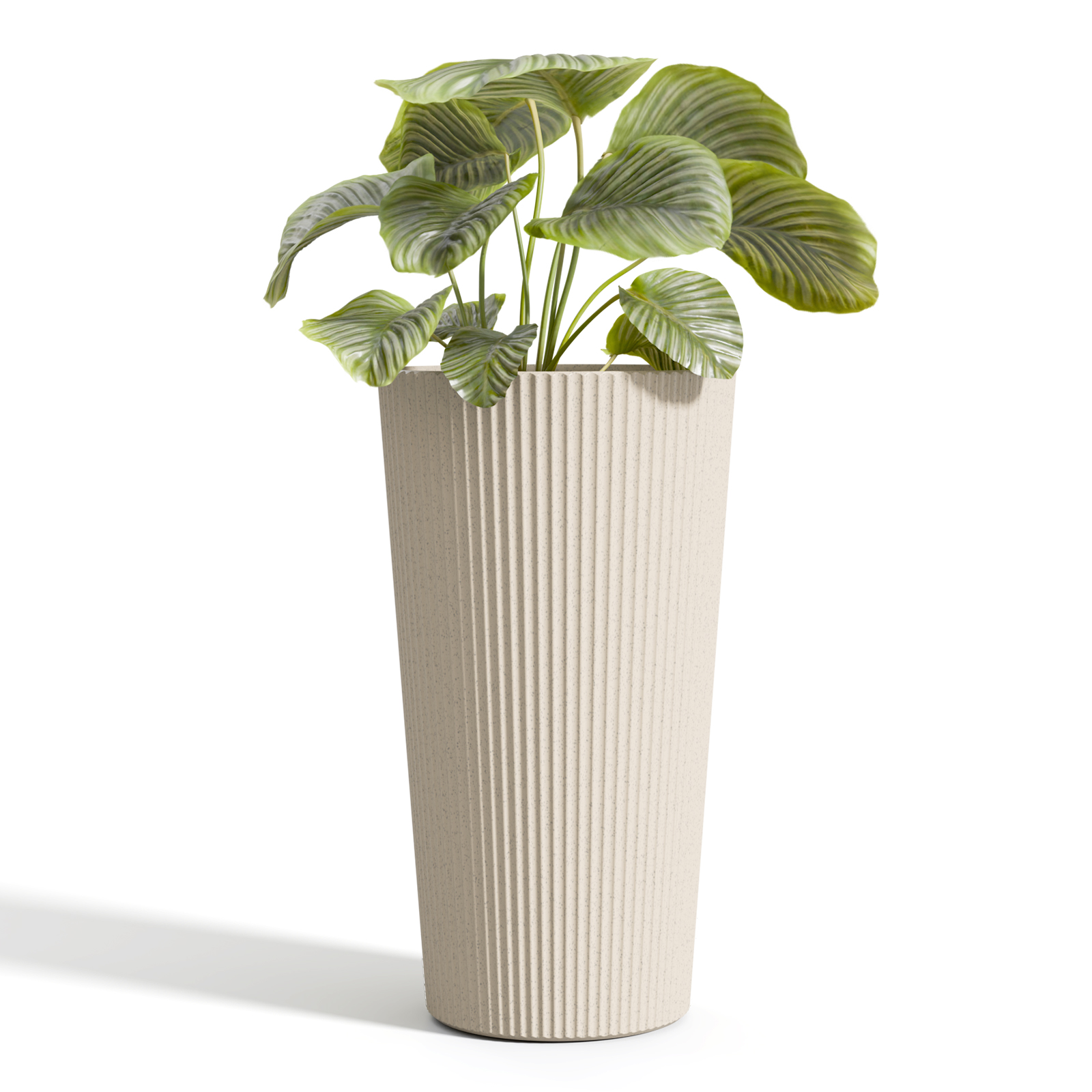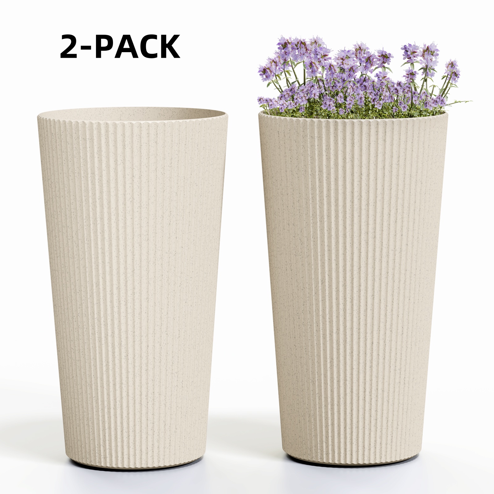 Chiccushion Tall Round Planter Set of 2, 23.6 Inch Tall Decorative Planter Pots for Outdoor Indoor Garden Patio Front Porch, Beige
