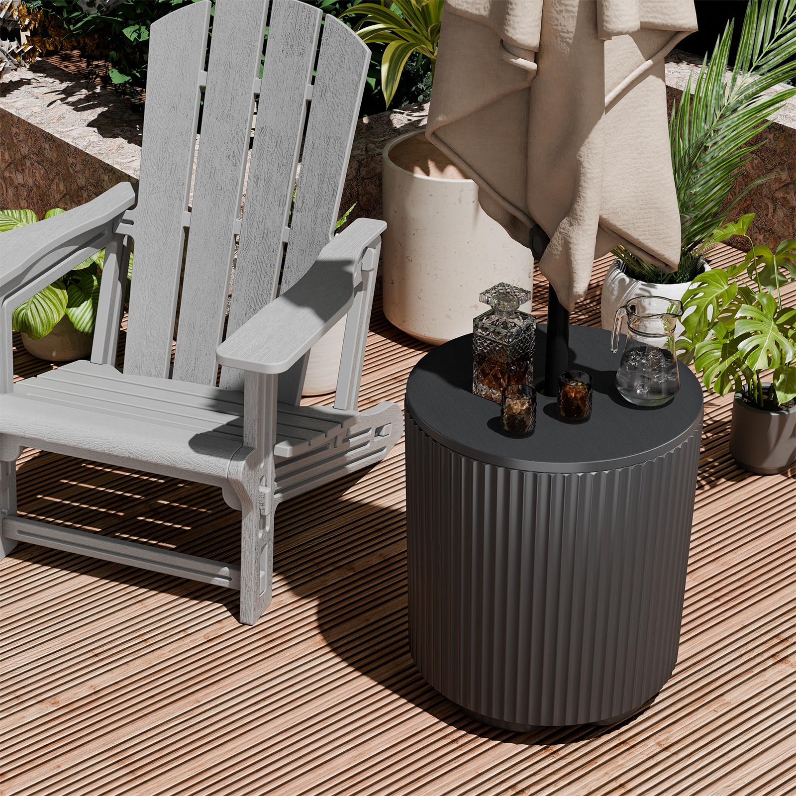 - Sturdy Base with Stability Bladder: Our small outdoor table features a built-in bladder that holds up to 11.5 gallons of water or sand, providing a stable base. This prevents tipping and ensures safety in windy conditions or on uneven surfaces.