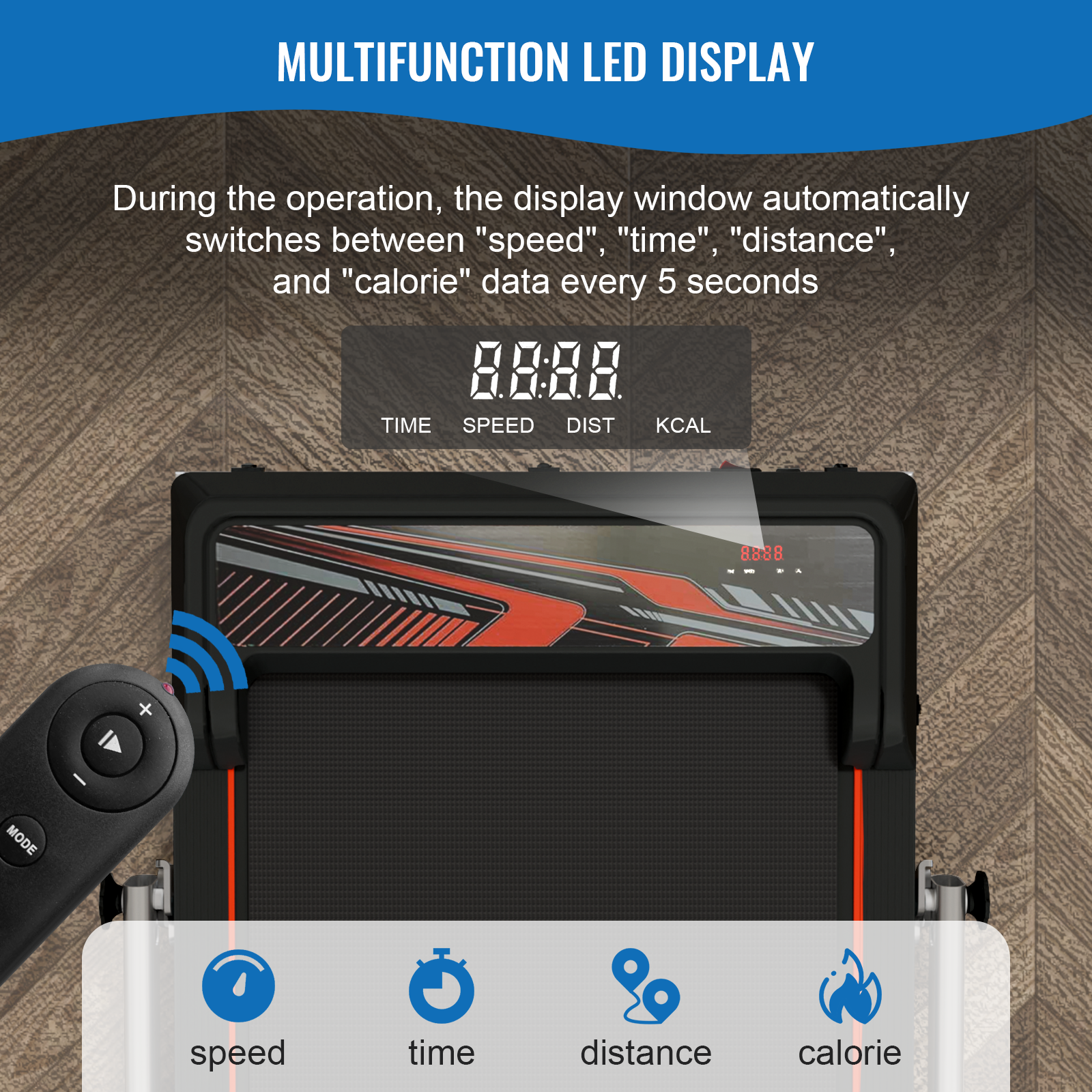 - 【Remote Control & Multi-Function LED Screen】The LED display on the running board shows speed, distance, time, and calories, making it simple to track your progress in real-time. Elevate your workout effortlessly with both touch screen and remote control, adjust the speed level easily. While running or walking, the remote control lets you conveniently adjust speed or stop.