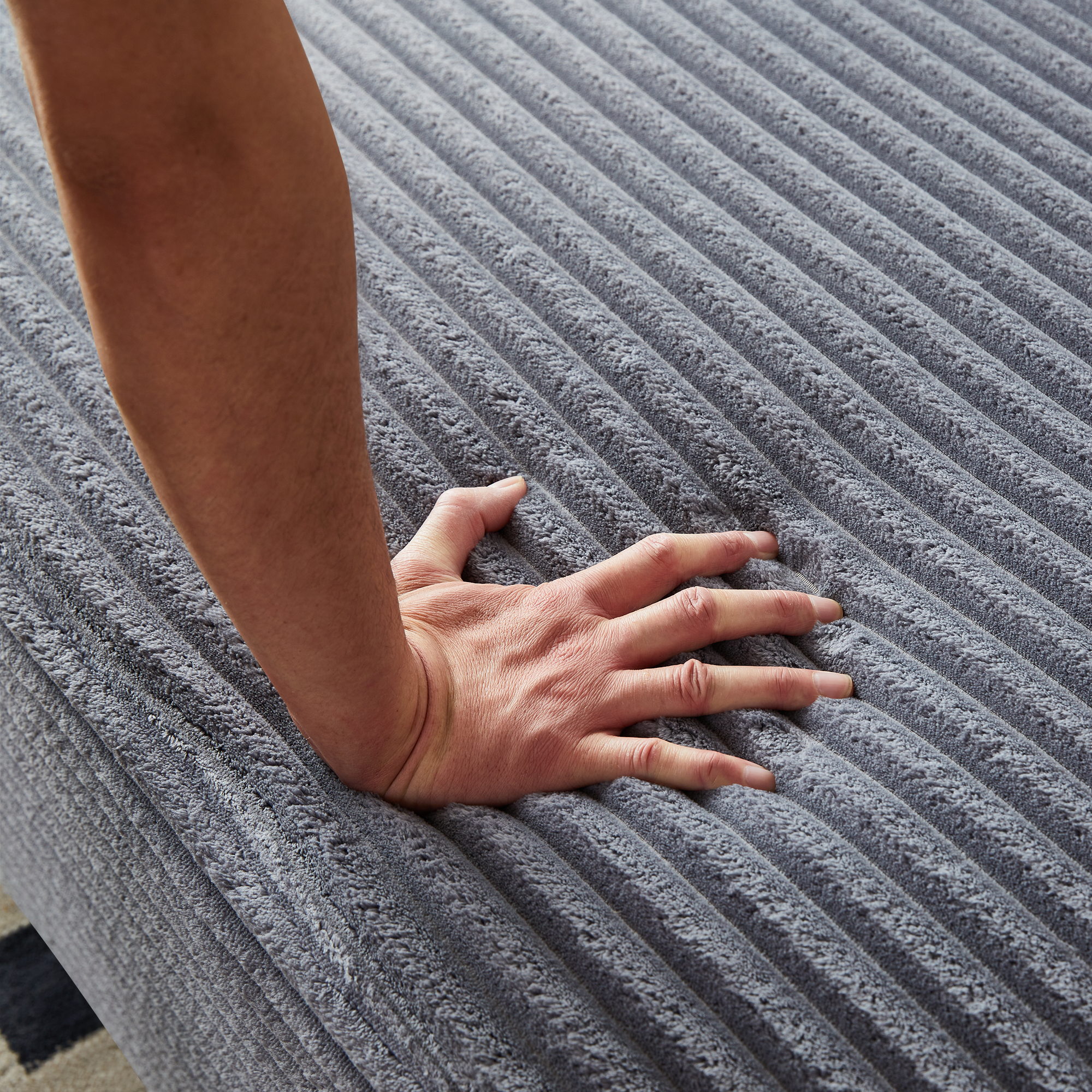 Flannel Velvet Fabric: Crafted from high-quality Flannel Velvet fabric, this couch is a masterpiece of comfort and elegance. The fabric feels silky smooth against your skin, and its elegant texture combined with a soft sheen gives it an unrivaled quality. Moreover, its superior softness and warmth make it a delight to lounge on throughout the year, opening up a whole new world of sensory enjoyment for you in every season.