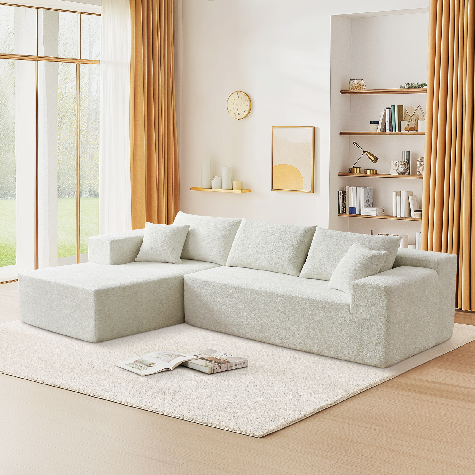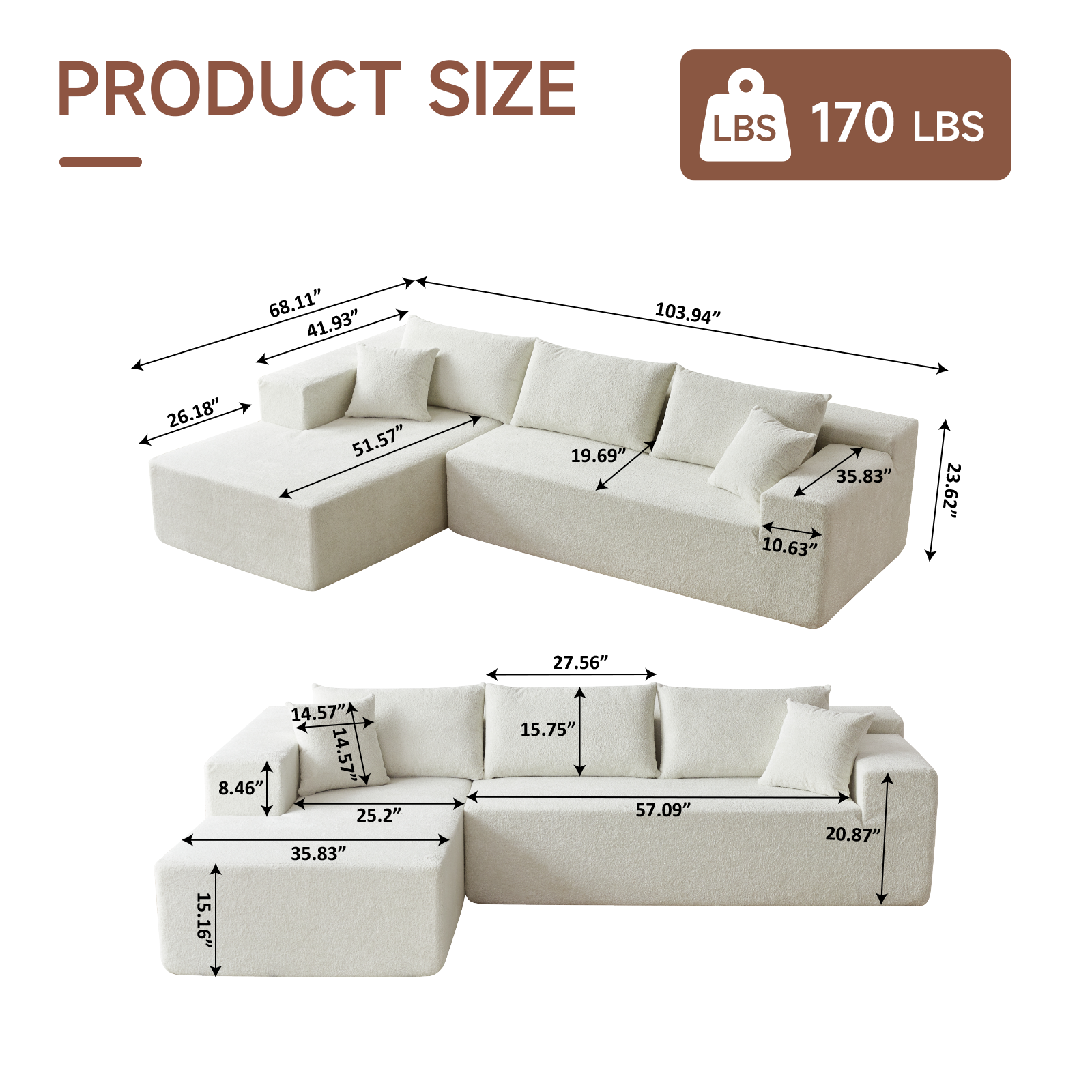 TOPCOMFY 104″ Modern L-Shaped Sectional Sofa with Right Chaise Lounge,Rain Drop Velvet Upholstered Sectional Couch, Deep Seating & 2 Pillows,Beige