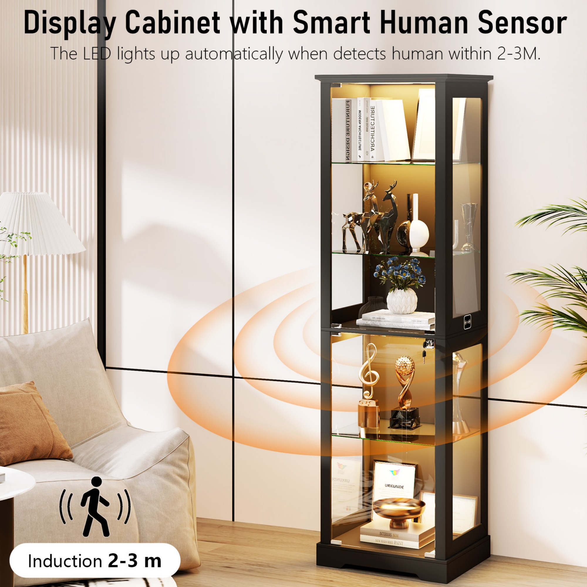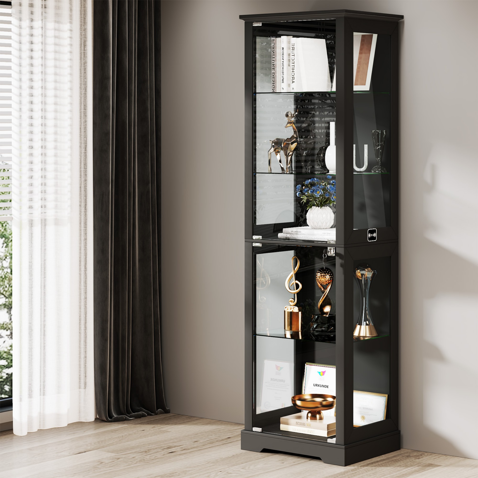 This glass display cabinet features a secure built-in locking system to safely store valuables, collectibles and delicate items, ideal for homes with children or pets. It offers a spacious 5-shelf design with generous storage space for collectibles, books and decorations. Structured with reasonable design, complete accessories and clear instructions, the cabinet ensures simplified and hassle-free assembly.