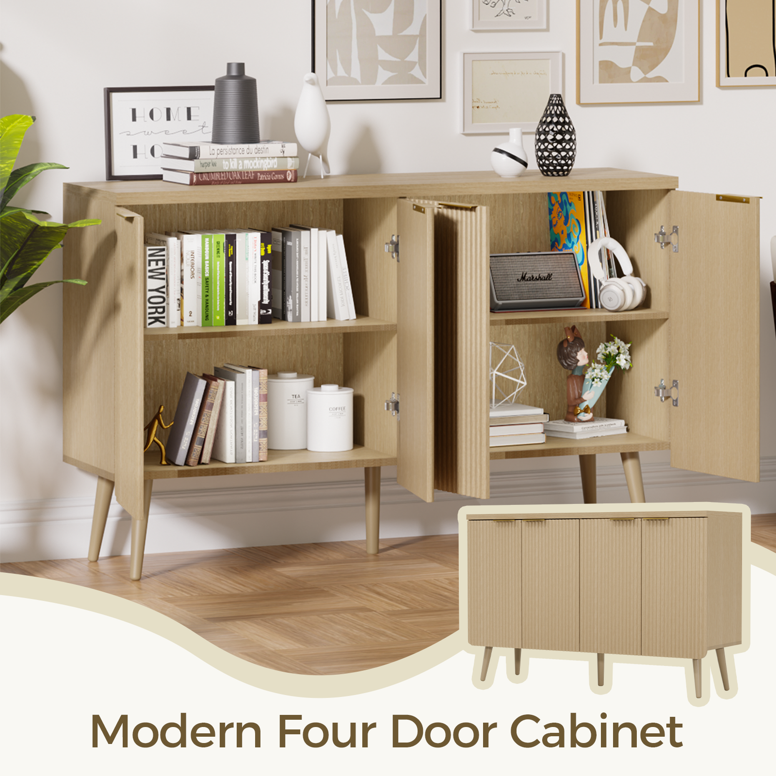 TOPCOMFY Buffet Cabinet with Storage, Multifunctional Storage Cabinet with 4 Doors, Modern Sideboard Buffet Credenzas for Living Room – Natural